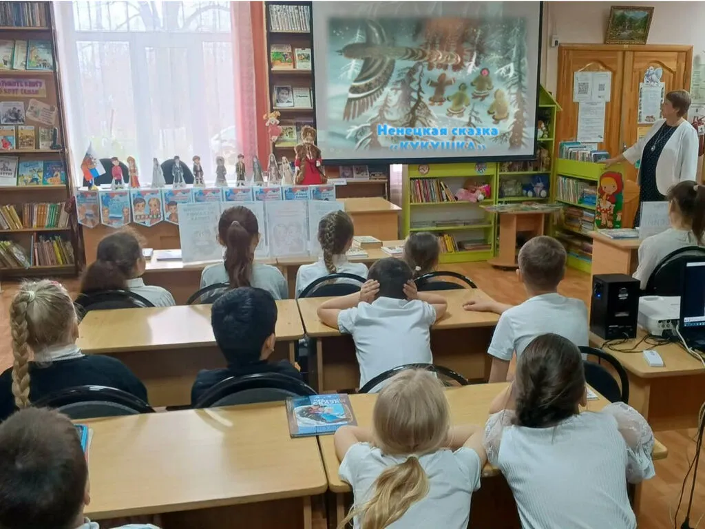В рамках Недели детской и юношеской книги и в честь Года единства народов России в нашей библиотеке прошёл литературный час «Сказки сближают народы». Библиотекарь рассказала детям, что Россия многонациональное государство, и у всех своя история, свои обычаи, своя древняя культура и свои сказки. Каждый народ сочинял свои сказки и передавал их из поколения в поколение, их любили во все времена и взрослые, и дети, любят их и сегодня. И какими бы ни были сказки — русскими, татарскими или адыгейскими — в них отражается дух народа, образ жизни, национальный характер, наполненный деталями быта того народа, той земли, где живет сказка, они помогают узнать лучше своих соседей и друзей других национальностей, живущих рядом, уважать их традиции и обычаи. В заключение литературного часа, ребята посмотрели ненецкую сказку «Кукушка».